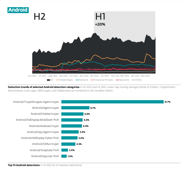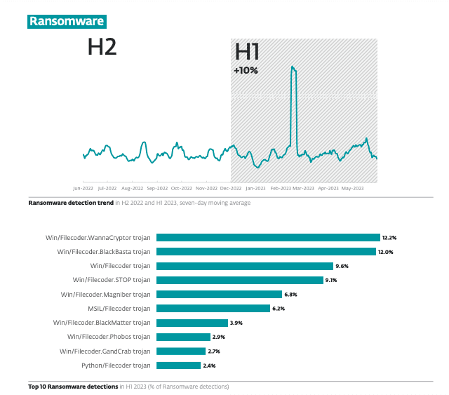 *Nota: Este blog se basa en el informe de ESET Threat Report correspondiente al primer semestre de 2023, que abarca el período comprendido entre diciembre de 2022 y mayo de 2023 (H1). Al comparar este período con H2 2022, nos referimos al período de junio de 2022 a noviembre de 2022.